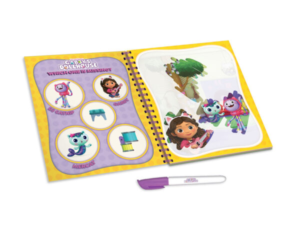 - 12 креативни страници: Вклучува 12 страници (17,5×20 см) исполнети со омилени ликови од Куќата за кукли на Габи, охрабрувајќи ги децата постојано да истражуваат и откриваат нови слики.