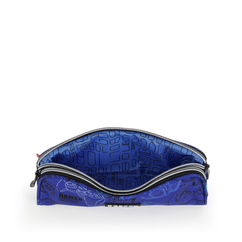 | футрола за школски прибор со две прегради . Направено со материјал без ПВЦ. Водоотпорен материјал. Димензии: 22x9x9 cm |