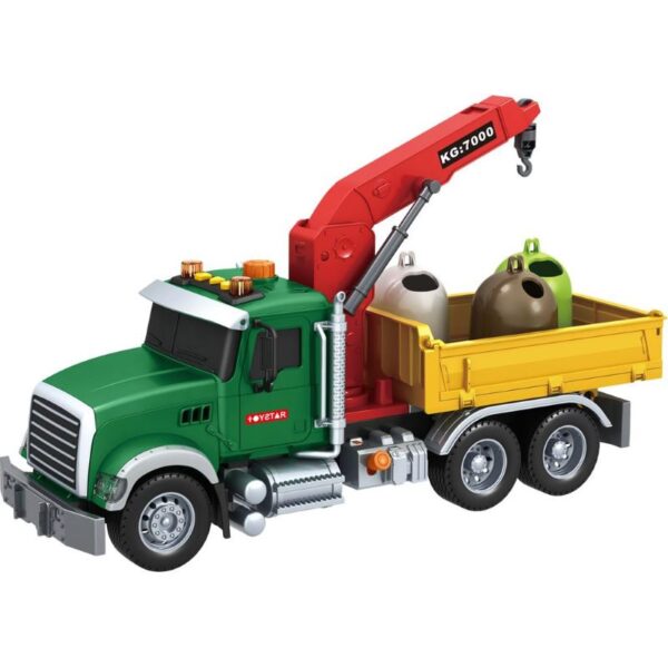 Камион за отпад со кран за бескрајни игри во домот или надвор. Со погонски систем со триење кој му овозможува на возилото да се движи напред со потисок.