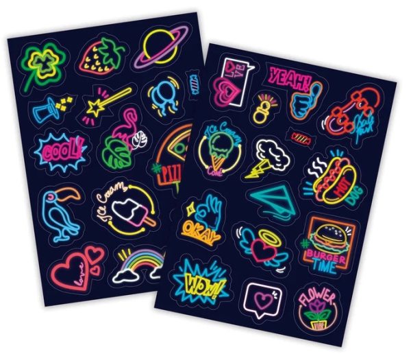Налепниците за закачување и откачување се многу и сите различни, за да се забавувате приспособувајќи ги предметите и додатоците! Многу налепници со посебен ефект на изненадување: светат во темница! Децата ќе се забавуваат избирајќи ги налепниците со илустрациите што најмногу им се допаѓаат и лепејќи ги каде сакаат како украс! Закачете, откачете и повторно закачете, забавата никогаш не завршува… единствената граница е вашата имагинација! Стимулирајте ја креативноста на лесен и забавен начин.