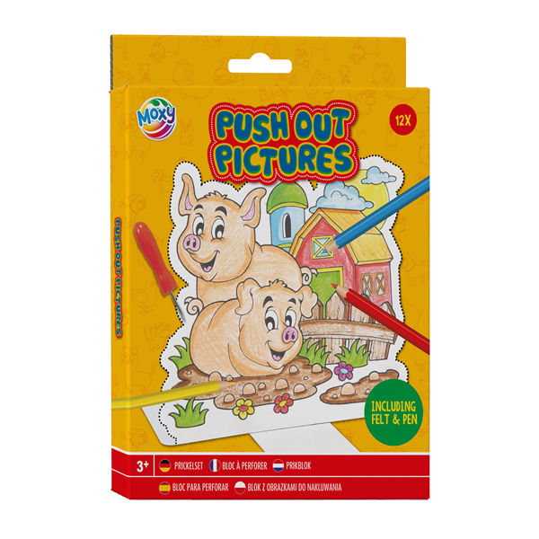 Сетот вклучува подлога од филц, брошура и 12 страници за боење. Сетот брошури е погоден за деца на возраст од 3 години и нагоре.