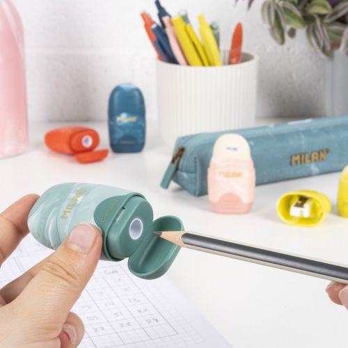 Острилката за моливи има остро и издржливо челично сечило кое одговара на повеќето моливи, со безбедносен систем на сечила што спречува сечилото да се олабави од своето тело.