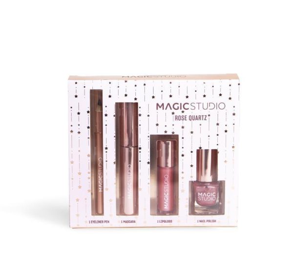 Со комплетот Rose Quartz ќе ги имате најважните елементи за едноставен, но гламурозен изглед, во само 4 чекори! Содржи розов лак, кармин, црн ајлајнер и маскара.