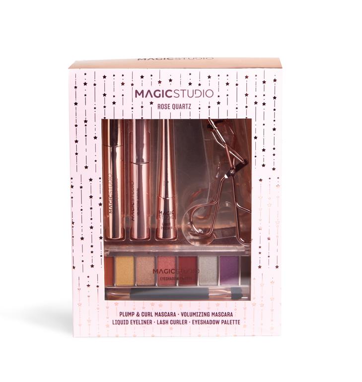 Идеален сет за љубителите на добра шминка за очи! Започнете со виткање на трепките, продолжете со комбинирање на мат и сатенски сенки, а потоа употребете молив за очи и на крајот додадете 2 слоја маскара за да добиете елегантен и интензивен изглед!