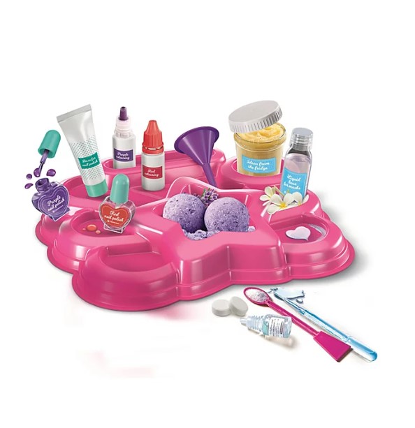 Со овој сет активности, можете да го поставите вашиот личен спа центар и да започнете да ги создавате вашите сопствени третмани, додека учите сè за козметика! Создадете хидратантни маски за лице и шарени, пенливи бомби за капење што ќе се растворат во вода. Исто така, вклучува и практична работилница за сите ваши креации. Направете ги своите шарени лакови за нокти за да може да ги декорирате вашите нокти и да го комплетирате целосно вашето искуство. Забавен начин да научите грижа за себе и да ги откриете основите на козметиката. Дизајниран и произведен во Италија. Погоден за деца од 8 години .