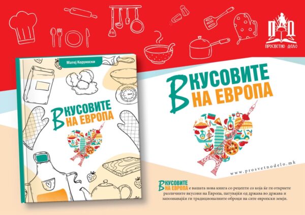 ВКУСОВИТЕ НА ЕВРОПА е вашaта нова книга со рецепти со која ќе ги откриете различните вкусови на Европа, патувајќи од држава во држава и запознавајќи ги традиционалните оброци на сите европски земји.